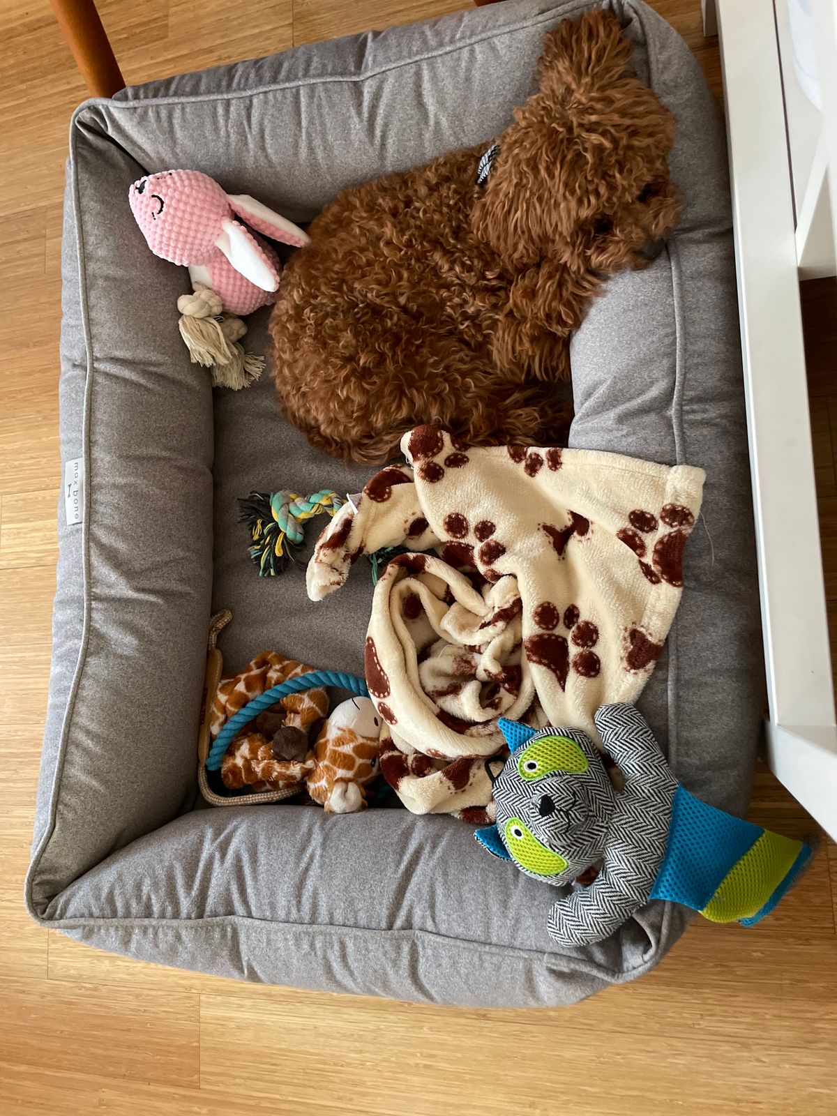 We’ve trialed many different beds but I think he enjoys the Max Bone beds the most. They have a nice cushioned border that he likes to rest his head on and I think they provide a sense of security for him. I love them because they look great and the neutral colors match my home decor.