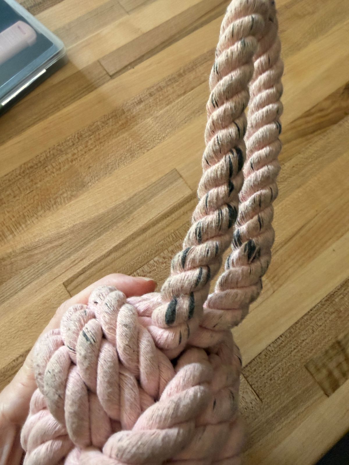 As you can see in the video, this is my dog‘s favorite toy! And even though she’s a small dog, she’s still requires a tough and durable chew toy, this is definitely it! The only reason for four out of five stars is that it looks like only the top layer is pink, and once they bite through it, the toy shows the gray rope underneath. I just wish it had all been pink, it would’ve kept the entire thing looking a little better with use.