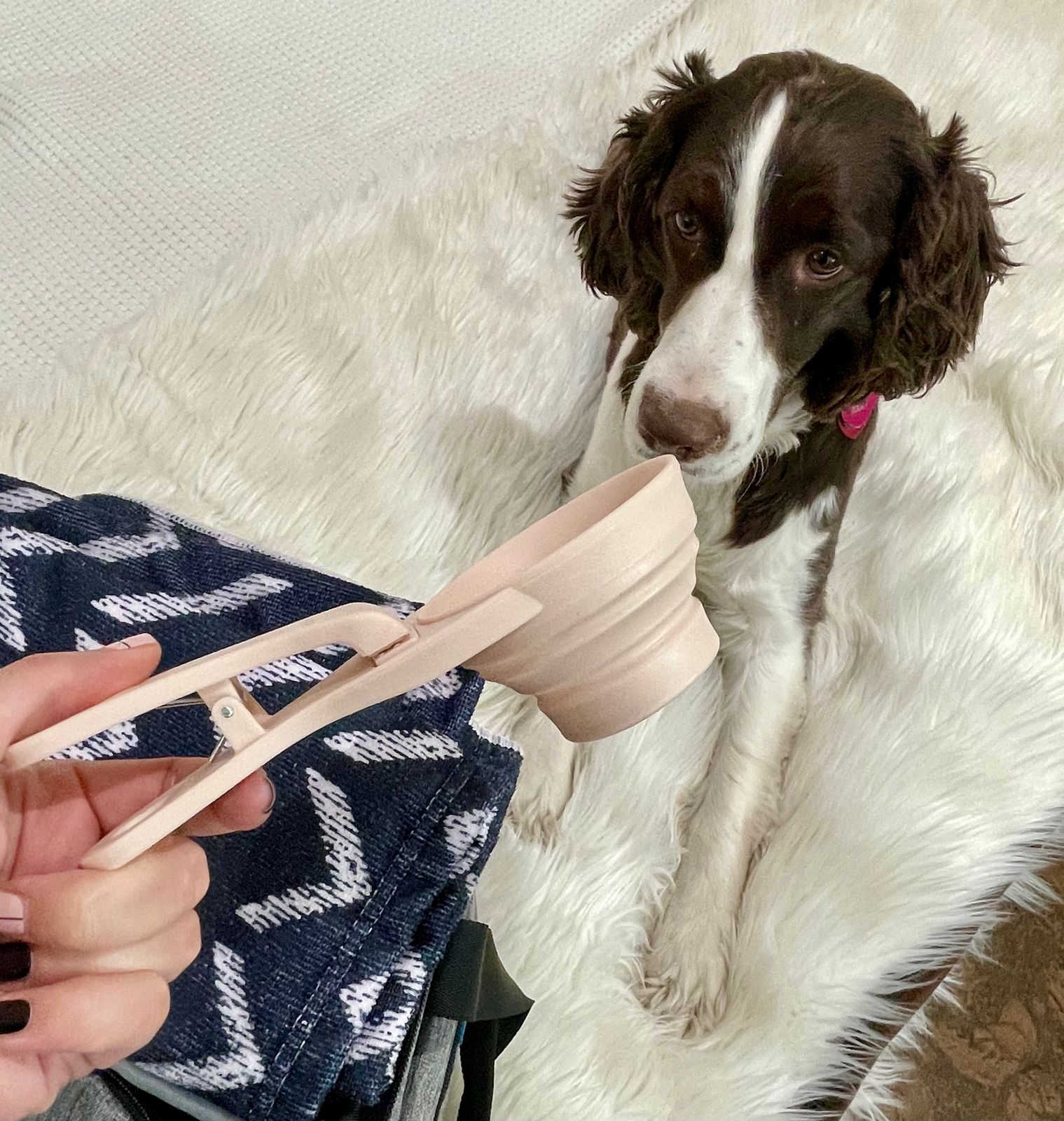 For some reason I latched onto this color. Maybe because it goes nicely with her bowls and my general aesthetic of neutrals. It's a 1/2 cup measurement [in case you had trouble locating that on the site like I did]. So it's perfect for us and super sturdy. I don't use it to keep bags closed, but to keep the scoop with the bag [without having to dig it out of the food inside]. It stays put for my needs