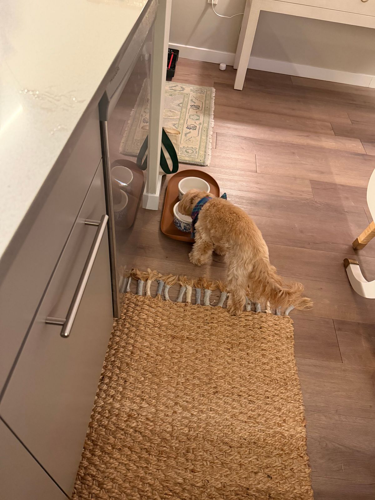 My daughter loved this for her fur baby’s dining area. Keeps it neat and confined even water sloshes. Super cute colors too. Oliver seems to like it as well!