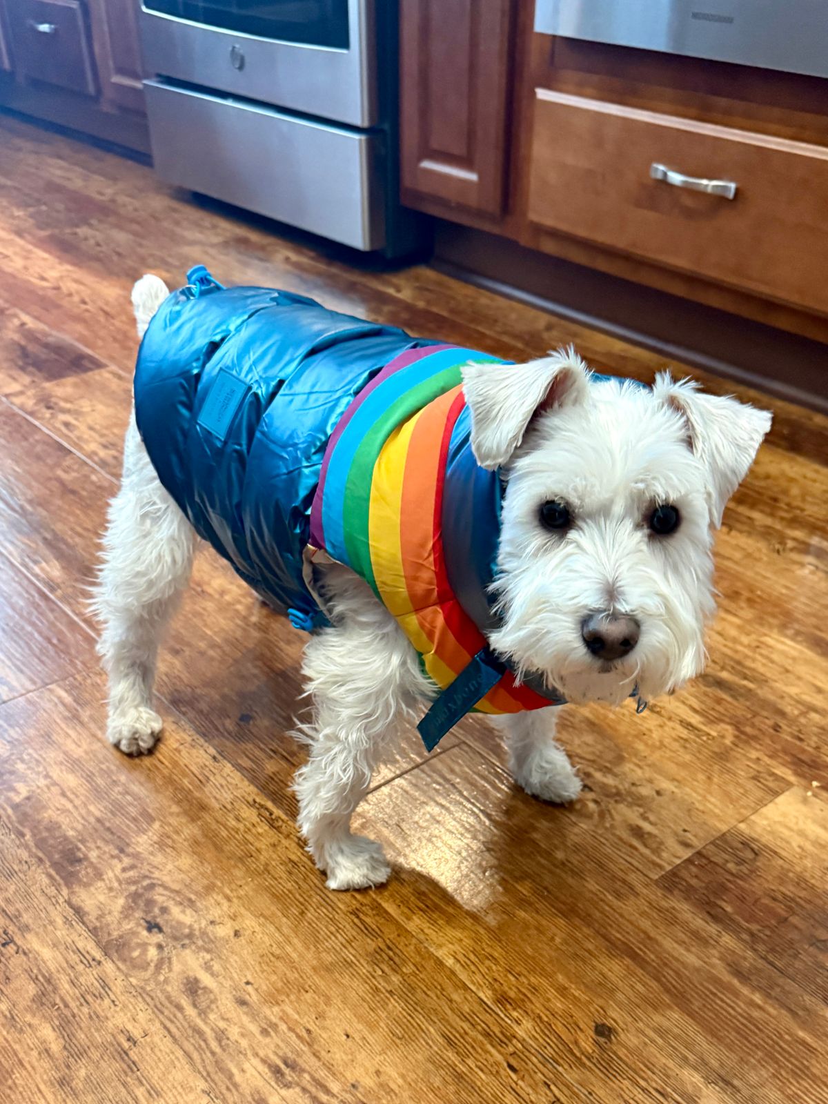 I love that the design allows warmth from neck and down the back. Very easy to put on!