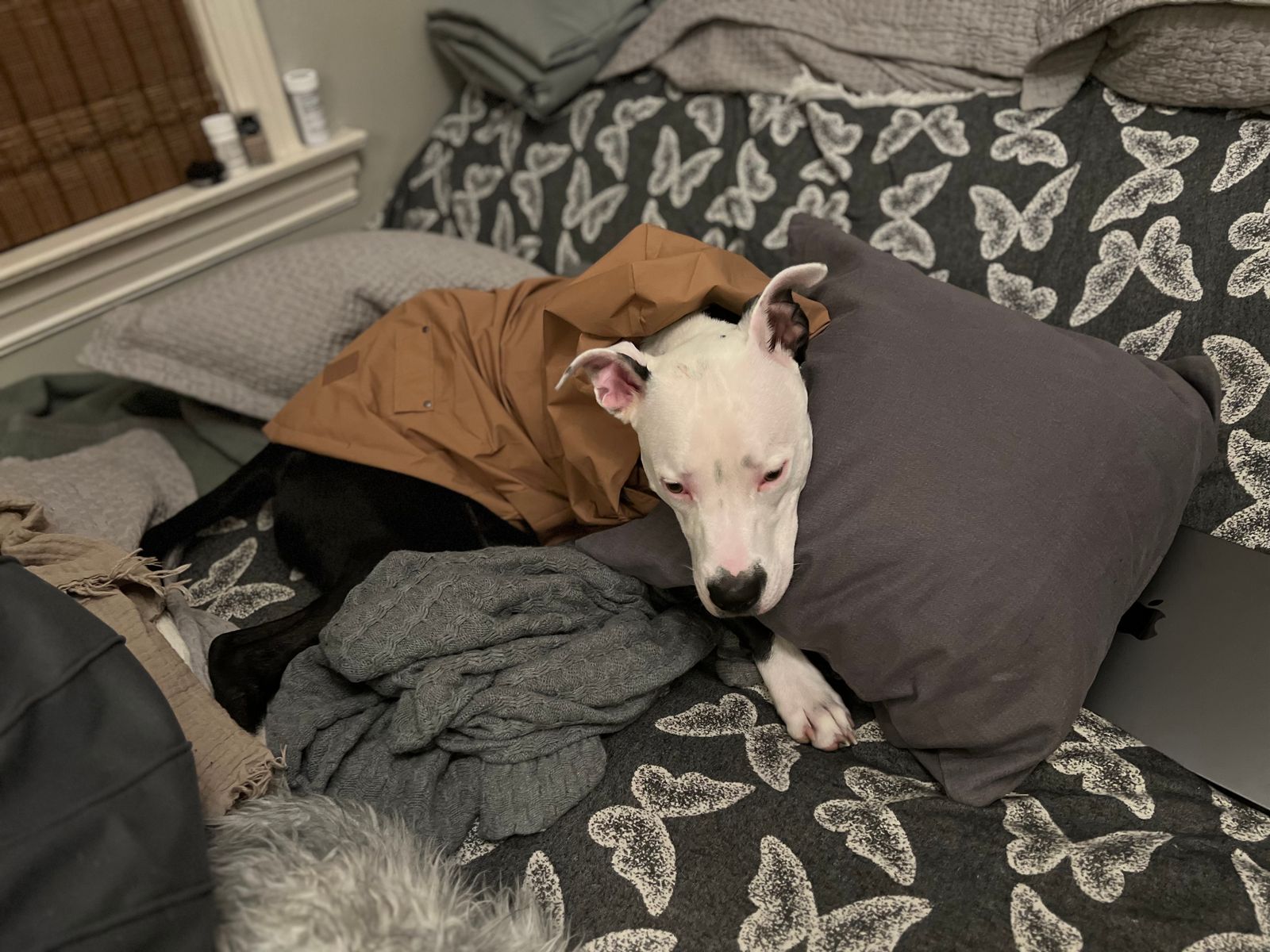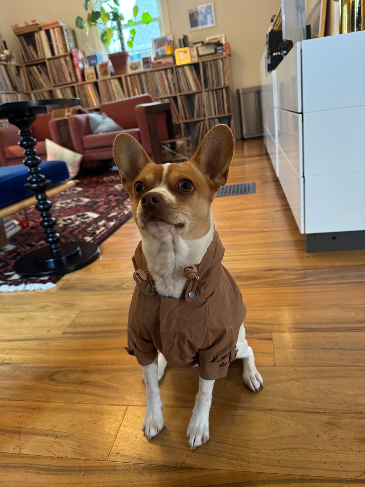 This was our first maxbone order and we are thrilled! My Monkitty Monkey is apparently uniquely shaped so our original order of the Talon raincoat following the sizing chart was not quite right. The wonderful maxbone CS agent who responded to my email request was so helpful with making a size related exchange and the exchange process was smooth and easy. I have been staring at the shipment tracking every day eager to see how the next size up would fit as I think that the Talon raincoat is adorable! We just returned home from appointments and dinner out, saw that the delivery of the new size had arrived, and could not wait to try it on. Monkey is so comfy in his new maxbone raincoat that he has been snuggled up with the raincoat still on and has snoozing peacefully for the past hour and a half. We will definitely be repeat customers! 🥰🐶